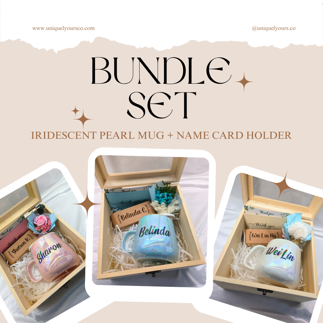 Discover our personalized bundle set gifts, featuring custom items like mugs, notebooks,...