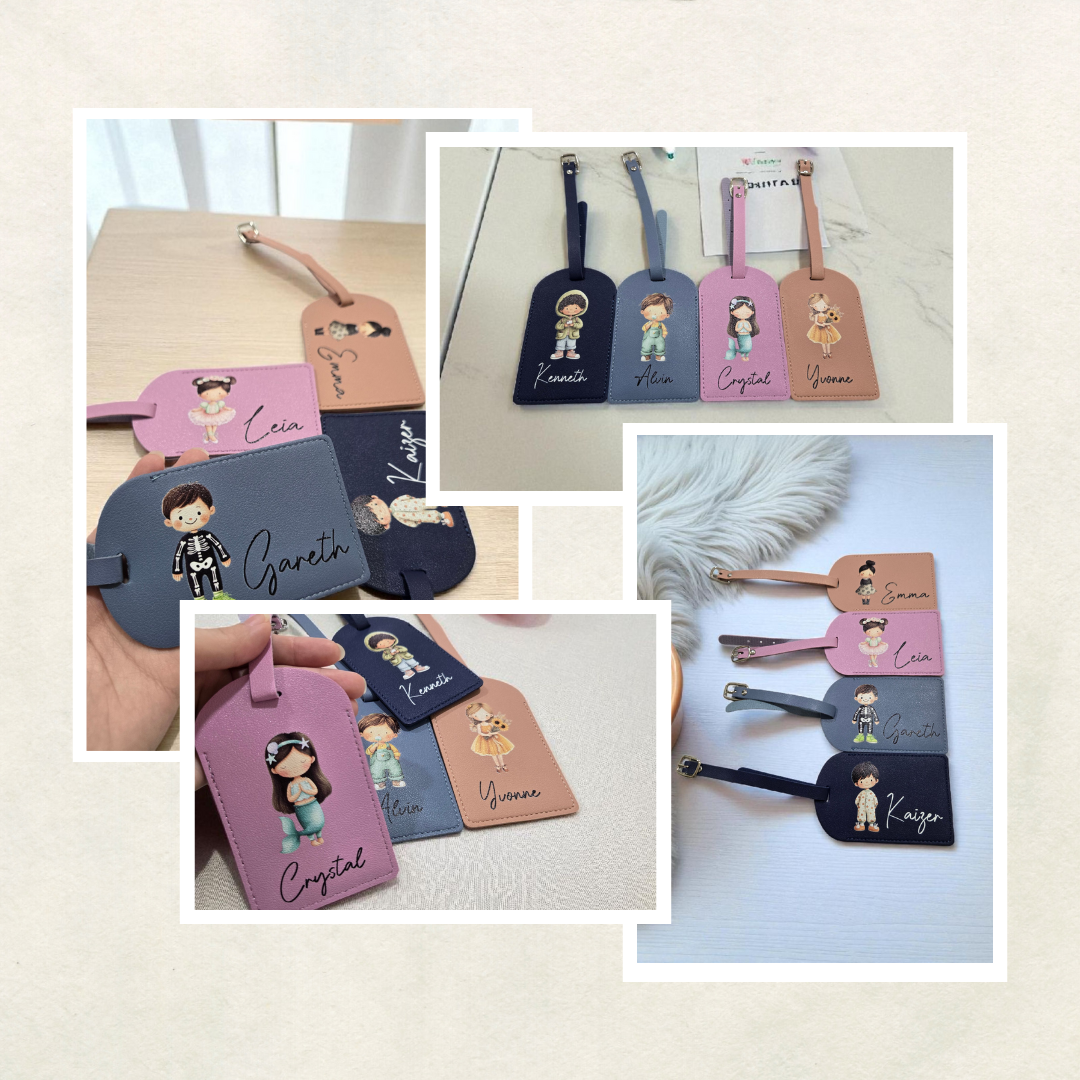 Add a personal touch to every journey with our Custom PVC Leather Luggage Tag. Crafted from premium faux leather and printed using high-quality UV printing, each tag showcases charming character illustrations alongside your name or personalized text in beautiful detail.