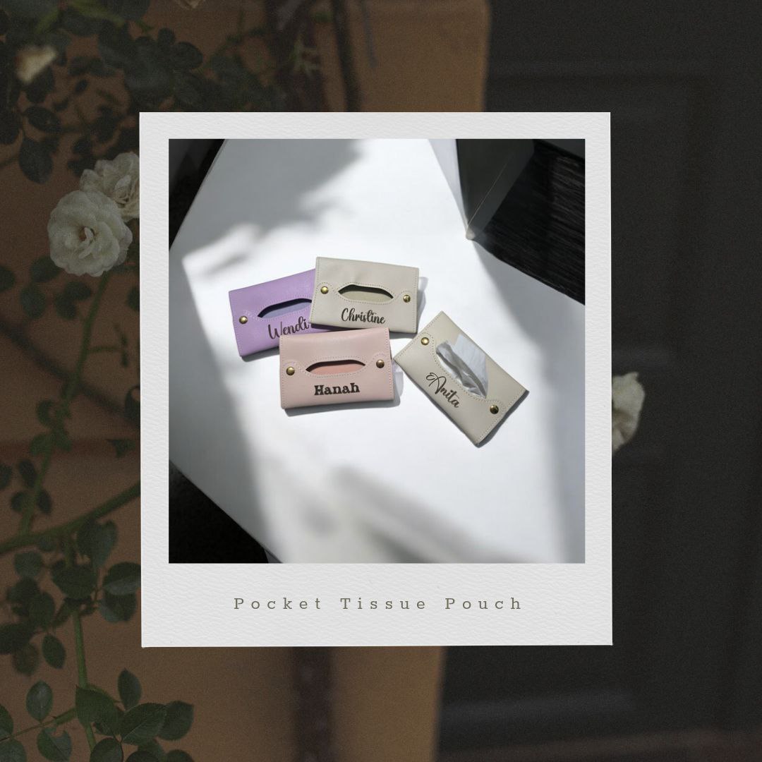 Elegant PVC leather pocket tissue pouch with custom laser engraving. Personalize it with a name or message for a chic and practical accessory. Ideal for keeping tissues handy while on the go, this stylish pouch makes a thoughtful and functional gift for any occasion. Durable and compact for everyday use.